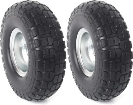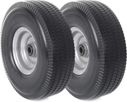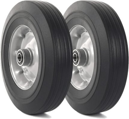 AR-PRO (2-Pack) 10″ x 2.5″ Flat Free Solid Rubber Replacement Tires – Flat-Free Tire and Wheel for Hand Trucks and Wheelbarrows with 5/8″ Axles