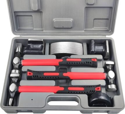 C&T Auto Body Repair Tool Kit,7 Piece,Car Body Repair Tool Kit, Carbon Steel Dolly and Hammer Dent Body Fender Tool Set
