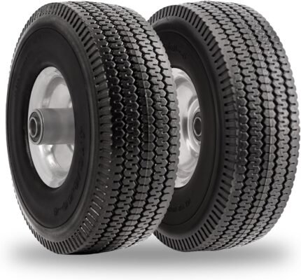 TICONN 10″ Solid Tires, 2 Pack Flat Free 4.10/3.50-4” Wheels with 5/8” Axle Bore Hole and Double Sealed Bearings (Black, 2PK)