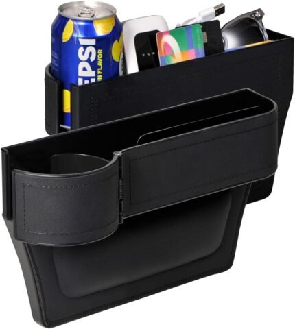 2025 New Car Seat Gap Filler Organizer, Car Seat Gap Filler with Cup Holder and Storage for Keys, Cards, Phone, Sunglasses and Small Items (Black, A Pair)
