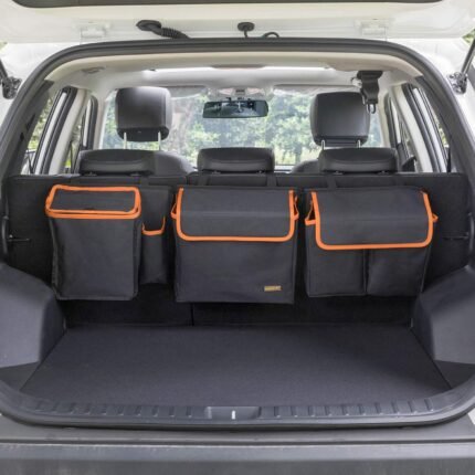 Femuar Car Trunk Organizer, Large Capacity Backseat Trunk Organizer (42″*18″), Collapsible Car Storage Bag with 8 Pockets, SUV/MPV/Truck – Black