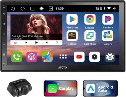 10.1″ Rotatable Touch Screen Car Stereo Single Din – Android 13, Wireless CarPlay/Android Auto, 4-Core CPU, 2GB+32GB, GPS Navigation, Hi-Fi Sound, Bluetooth 4.2, AHD Backup Camera (Vertical Fit)