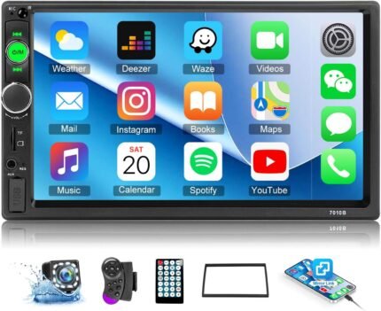 Double Din Car Stereo Receiver: CarPlay Android Auto Car Digital Multimedia System – Bluetooth 7 Inch Touchscreen MirrorLink AM FM Radio USB SD Aux-in HD Backup Camera Audio Output Subwoofer
