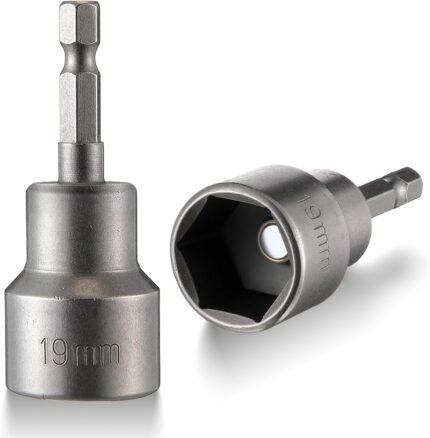 Dreyoo 2 Pack RV Scissor Jack Socket, 3/4″ or 19mm Drill Adapter with 1/4″ Hex Shank, Camper Trailer Stabilizer Jack Tool for RV, Car, Travel Trailer Leveling(Silver Gray)