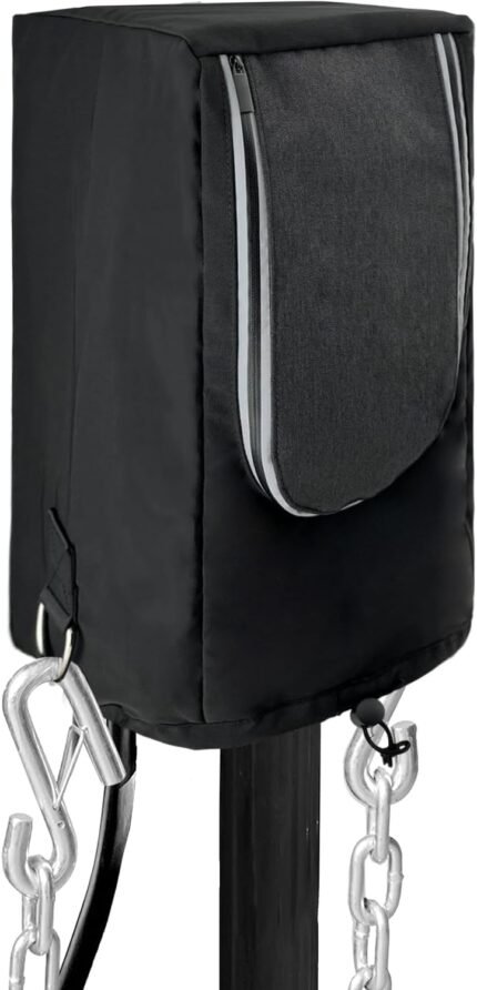 Electric Tongue Jack Cover, 600D Waterproof, UV Resistant, RV Travel Trailer Jack Protective Cover 10″L x 5″W x 14″H, RV Accessories, Black
