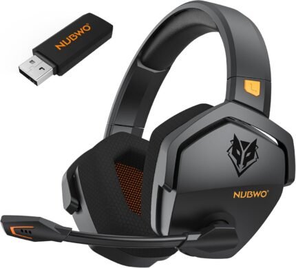 NUBWO Wireless Gaming Headset with Mic for Ps5 Ps4 PC, Zero Interference, 100-Hour Battery All-Day Play, 23ms Sync for Fortnite & Call of Duty/FPS Gamers, Triple Mode All Devices Compatible – Orange