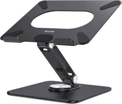 BESIGN LSX7 Laptop Stand with 360 Rotating Base, Ergonomic Adjustable Notebook Riser Holder Compatible with Air, Pro, Dell, HP, Lenovo More 10-15.6″ Laptops (Black)