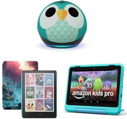 Amazon Kids Entertainment Device Bundle Including Fire HD 8 Kids Pro Tablet (32GB, Hello Teal) + Kindle Colorsoft Kids (16GB, Fantasy River) + Echo Dot Kids (Owl)