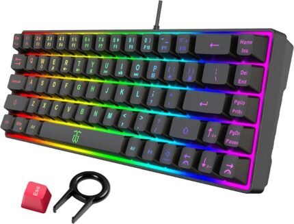 Snpurdiri 60% Gaming Keyboard, Rainbow Backlit Mini Membrane Keyboard for Windows PC Gamers(68 Keys, Black Rainbow)