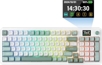 Redragon K719 Wireless Gasket Gaming Keyboard w/Hype Screen & Knob, 95 Keys Mechanical Keyboard, Easy-Control 1.14’’ TFT Info Display, 5-Layer Noise Dampening, Custom Linear Switch, Jade Cloud Color
