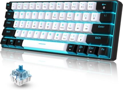 Snpurdiri 60% Wired Mechanical Gaming Keyboard, Ice Blue LED Backlit 61 Keys Mini Wired Office Keyboard for Windows Laptop PC Mac (Black-White, Blue Switches)