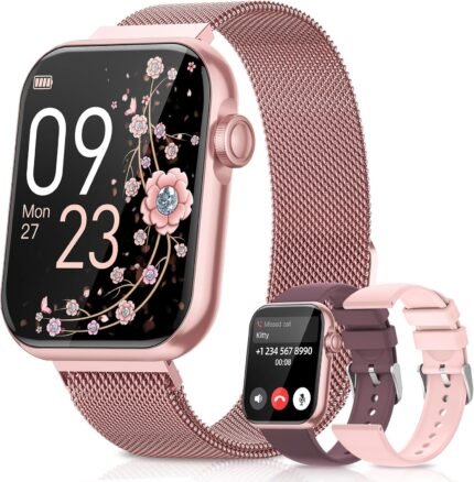 Smartwatch for Women – Call, Fitness Tracker, Heart Rate & Sleep Monitor, 1.69″ Touch Screen, Waterproof – For Android & iPhone, Pink