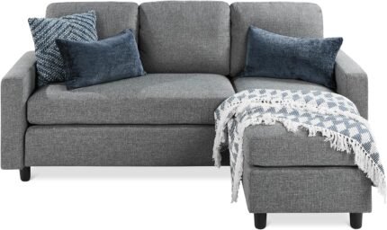 Best Choice Products Upholstered Sectional Sofa for Home, Apartment, Dorm, Bonus Room, Compact Spaces w/Chaise Lounge, 3-Seat, L-Shape Design, Reversible Ottoman Bench, 680lb Capacity – Gray