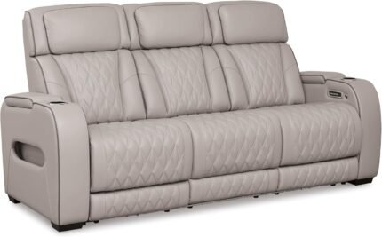 Signature Design by Ashley Biscoe Casual UV Resistant Power Reclining Sofa with Adjustable Headrest and USB Ports, Light Gray