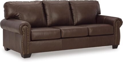Signature Design by Ashley Colleton Classic Leather Match Sofa with Nailheads, Dark Brown