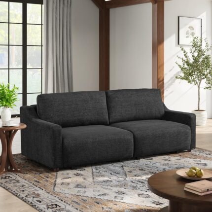 Serta Glendale 90.2″ Queen Size Wall-Hugging Convertible Sofa, Dreamcoil Comfort, Chenille Fabric, Black