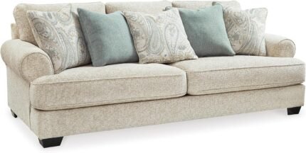 Signature Design by Ashley Monaghan Vintage Sofa with Accent Pillows, Reversible Cushions and Rolled Arms, Beige