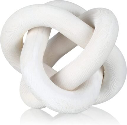 3 Link Wood Knot Decor – Hand Carved Coffee Table Decoration, Boho Chain Link Decor, Modern Shelf, Rustic Objects for Home Living Room Bedroom(White)