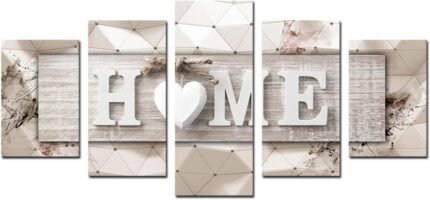 AWLXPHY Decor Home Decoration Wall Art Canvas for Living Room Framed Painting Pink and Grey 5 Panels Modern Abstract Love Art Stretched Artwork 3D Giclee Kitchen Decor(Grey, W40 x H20)