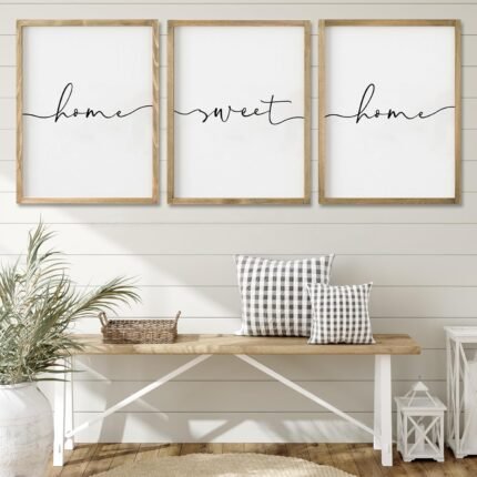 Set of 3 Framed Farmhouse Home Sweet Home Sign Above Bed Wall Decor for Bedroom Decor Wall Art Wood Signs