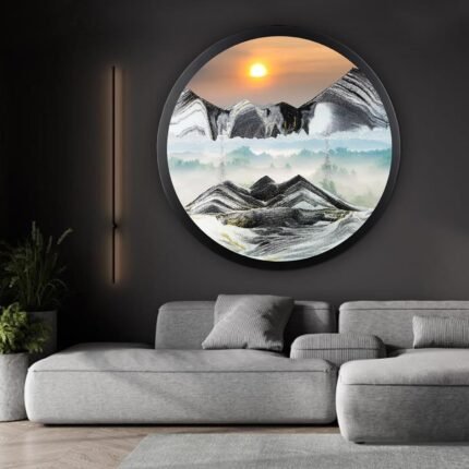 Mtadmai 24″ Moving Sand Art, 3D Sand Art Pictures Deep Sea Sandscape Living Room Decoration, 360° Rotate, Glass Crafts Solid Wood Frame, Relaxing Mood Home Office Work Wall Art Decor