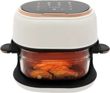 4-in-1 Portable Glass Air Fryer, 140–400°F Precise Heat, Max Crisp Technology, 4.2QT & 1.6QT Dual Containers with Lids, Freezer & Dishwasher Safe, Bake, Recrisp, Air Fry