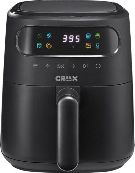 CRUX x Marshmello 3.0 QT Digital Air Fryer with TurboCrisp Technology, Touch Screen Temperature Control, Timer and Auto Shut-off, Fully Programmable, Silicone Cupcake Molds Included, Black