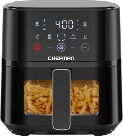 Chefman Air Fryer – 6 QT Compact Airfryer for Quick & Easy Meals in Minutes, Features Hi-Fry Technology for Extra Crisp, Touchscreen Controls with 4 Presets, Nonstick & Dishwasher Safe Basket – Black