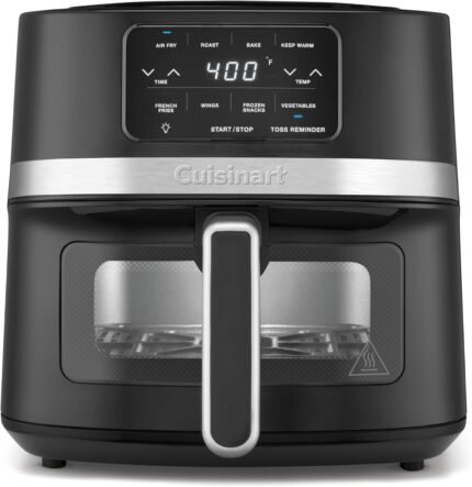 Cuisinart Air Fryer, Large 6-Quart Basket with 4 Cooking Functions to Air Fry, Bake, Roast, and Keep Warm, 3 Presets, PFAS-Free, Dishwasher-Safe Parts, AIR-180, Black & Stainless Steel