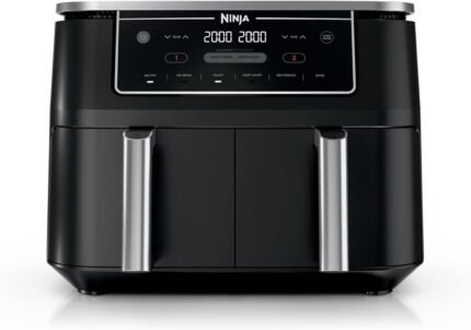 Ninja DZ201 Foodi 8-Quart 6-in-1 DualZone Air Fryer (Renewed), 2 Independent Fry Baskets, Smart Finish & Match Cook, Roast, Bake, Reheat, Dehydrate