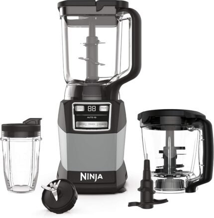 Ninja Blender, Compact Kitchen System, 1200W, 3 Functions for Smoothies, Dough & Frozen Drinks with Auto-IQ, 72-oz.* Blender Pitcher, 40-oz. Processor Bowl & 18-oz. Single-Serve Cup, Grey, AMZ493BRN
