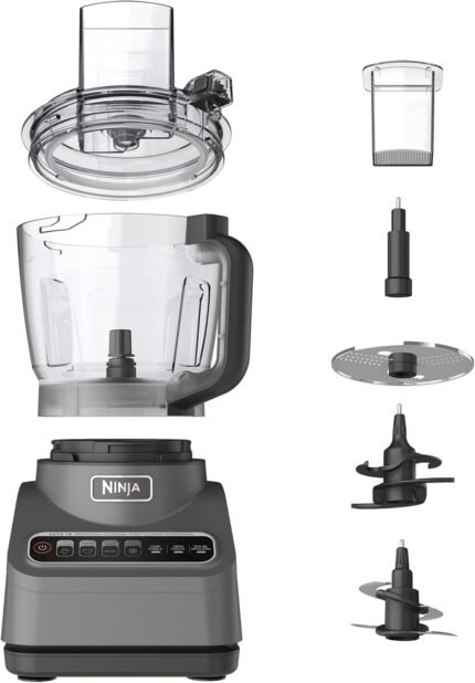 Ninja Food Processor, Professional Plus, 1000 Peak Watts, 4 Functions for Chopping, Slicing, Purees & Dough with 9-Cup Processor Bowl, 3 Blades, Food Chute & Pusher, Silver, BN601