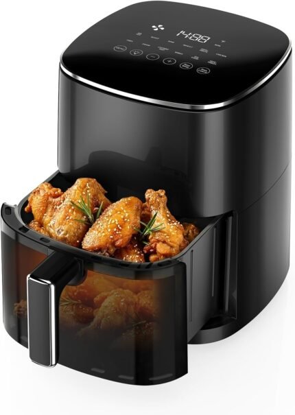 NEWBULIG Air Fryer, 6QT Square Airfryer with Visual Window, 400℉ Fast Heating Air Fryers Oven with Timer, Auto-Off, Non Toxic & Non Stick, Multiple 12 Modes for Roast, Bake, Dehydrate, Fry, Reheat