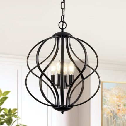 Modern Black Chandelier for Dining Room, 4 Lights Geometric Chandeliers, Sphere Chandelier Industrial Large Pendant Light Fixtures Hanging for Kitchen, Entryway, Foyer, Stairs