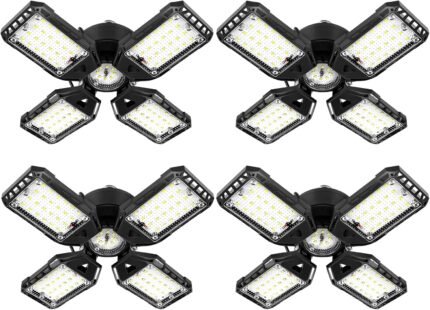 LED Garage Lights 4 Pack -120W, 12000LM 6500K Led Shop Light with 4+1 Deformable Panels, Basement Barn Light Garages Ceiling Lights, E26/E27 for Garage, Warehouse, Shop