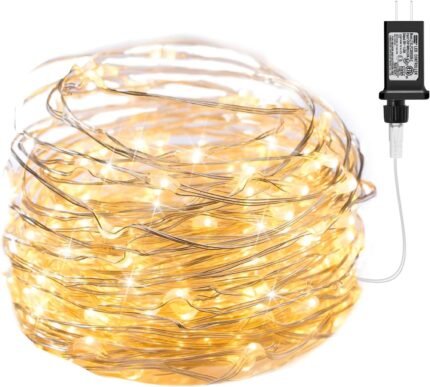 Minetom Fairy Lights Plug in, 33Ft 100 LEDs Waterproof Silver Wire Firefly Lights, Adaptor Included, Starry String Lights for Wedding Indoor Outdoor Christmas Patio Garden Decoration, Warm White