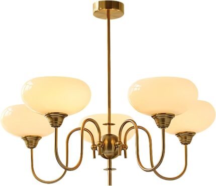 Vintage Glass Dining Chandelier 5 Light Antique Brass Chandelier Light Fixtures Mid Century Modern Sputnik Ceiling Light Fixture Large Gold Globe Pendant Light for Living Room