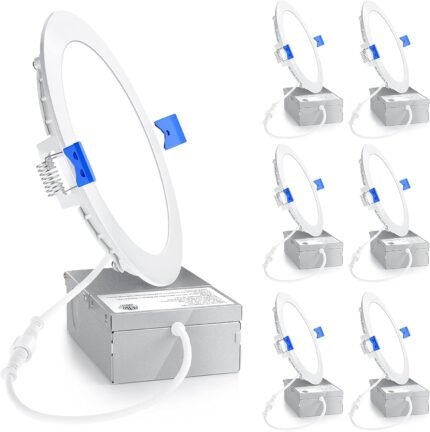 Ensenior 6 Pack 6 Inch LED Recessed Light, Dimmable, 5000K Daylight, 1050LM High Brightness, 12W 120V, Damp Rated, Ultra-Thin Canless Wafer Ceiling Light – ETL & FCC & IC