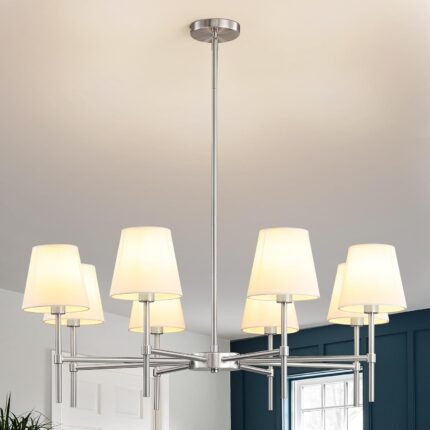 Dining Room Chandeliers Light – Modern Brushed Nickel Chandelier, 8-Light Metal Farmhouse Dining Room Light Fixture, E26 Hanging Pendent Lighting for Kitchen, Living Room, Foyer, Entrance