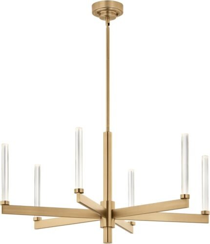 Kichler Sycara 6-Light LED Chandelier, Modern Light with Faceted Crystal in Champagne Bronze, Sloped Ceiling Compatible, for Dining or Living Room, Bedroom or Office (19.75″ x 36.25″), 52667CPZ