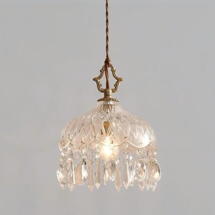 LIGHTLAND 8 Inch Vintage Crystal Chandelier, Crystal Dome Chandelier for Bedroom, Hallway, Balcony, Bedside, Bar