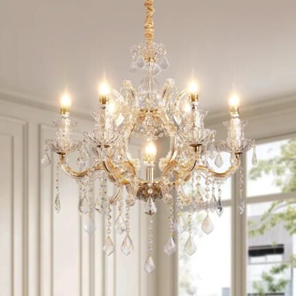 Luxurious K9 Crystal Chandelier for Living Room & Bedroom – Elegant Modern Ceiling Light, Adjustable Height, Energy-Efficient LED (7 Lights E12 Bulbs)