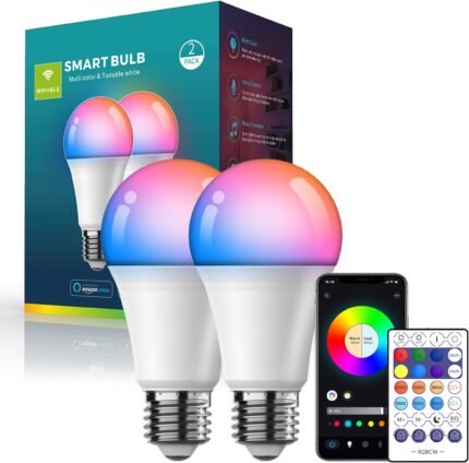 Beantech Wi-Fi Smart Light Bulb, Full Color Changing Light Bulb(RGB+W) 2 Pack-Compatible with Alexa and Google Assistant, Multicolor, (WB5-2p)