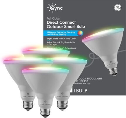 GE CYNC Smart LED Light Bulbs, Color Changing Lights, Bluetooth and Wi-Fi Lights,Compatible with Alexa and Google Home, PAR38 Outdoor Floodlight Bulbs (4 Pack)