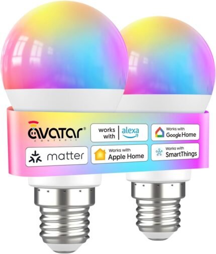 Avatar Controls Matter Smart Light Bulb Compatible with Apple HomeKit/Alexa/Google Home, 9W 2 Pack Color Changing Alexa LED Light Bulbs, Voice/App Controlled Dimmable WiFi Lighting for Room