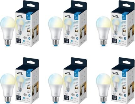 WiZ 60W A19 Tunable White LED Smart Bulb – Pack of 6 – E26- Indoor – Connects to Your Existing Wi-Fi – Control with Voice or App + Activate with Motion – Matter Compatible