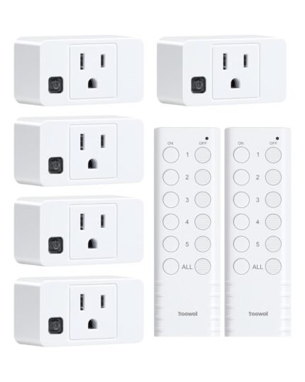 Wireless Remote Control Outlet, 200FT Long Range Remote Light Switch, Mini Remote Outlet Plug, 15A/1875W High-Power for Lamps, Lights, Household Appliances, FCC & ETL Listed (5 Outlets + 2 Remotes)