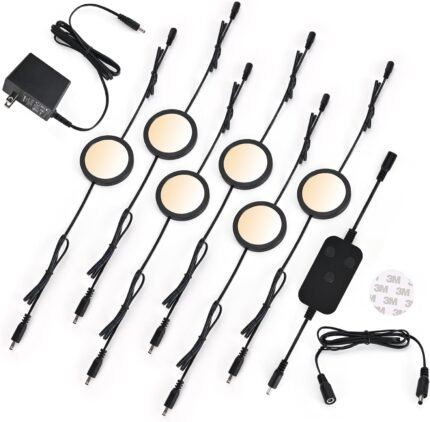 6pack LED Puck Light Kit, 2700-6000K Smart Round Under Cabinet Lighting with APP Control, Compatible with Alexa, Google Assistant, for Under Counter, Kitchen (Black)