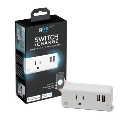 Geeni Switch + Charge Multi Port Smart Wi-Fi Plug with 2 USB Ports, Energy Saving Outlet with App Control, Compatible with Alexa and Google Home