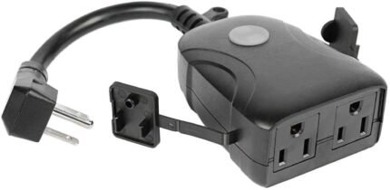 Enbrighten Vibe Outdoor Smart Plug, 2 Grounded Outlets, Weather-Resistant, Custom ON/Off Controls, Schedule Outdoor Lighting, Works with Alexa, Google Assistant, Black,51251